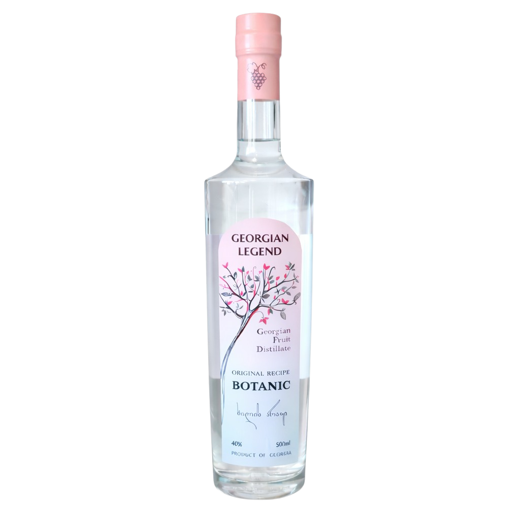Georgian Fruit Distillate, Original BOTANIC Recipe. Made from indigenous grapes & other high quality Georgian organic fruits. Produced in traditional ways & strictly to recipe and specification. Kept natural in every way with no allowance for any artificial additives. 0.50L / 40% abv.
